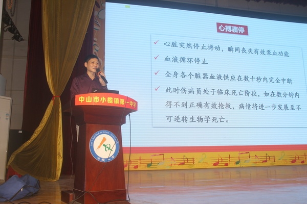 為推進(jìn)平安校園建設(shè),普及應(yīng)急救護(hù)知識(shí),2021年11月17日下午,小欖鎮(zhèn)第一中學(xué)開展了“應(yīng)急救護(hù)進(jìn)校園”主題教育培訓(xùn)活動(dòng),邀請(qǐng)了中山市陳星海醫(yī)院的余嘉明主任來(lái)校,在體育館為師生們進(jìn)行應(yīng)急救護(hù)知識(shí)培訓(xùn)。學(xué)校張玉良主任、陳群級(jí)長(zhǎng)和近五百名師生參加了活動(dòng)。