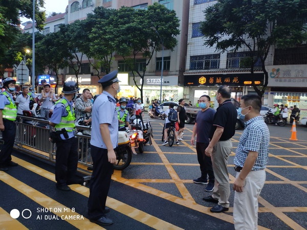 為營(yíng)造校園周邊良好的社會(huì)氛圍,保護(hù)學(xué)生不受傷害,營(yíng)造“平安、和諧”的校園環(huán)境,2020年9月30日傍晚,小欖一中陳源斌副校長(zhǎng)、張玉良副主任、李江副主任、陳群級(jí)長(zhǎng)等德育線干部,在校門口與升平派出所駐校警官歐浩友警長(zhǎng)帶領(lǐng)的警員匯合,然后分乘摩托車,對(duì)學(xué)校周邊環(huán)境進(jìn)行拉網(wǎng)式巡查,重點(diǎn)是周邊飲食店鋪及社區(qū)公共場(chǎng)所。