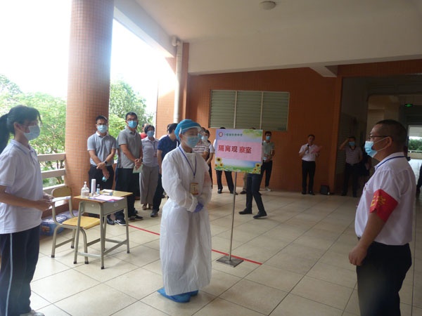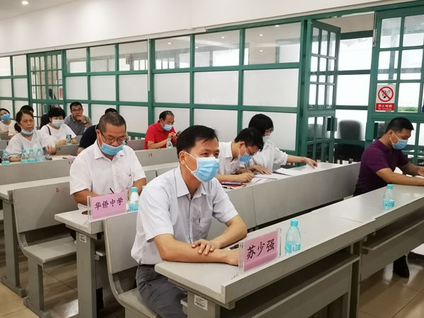為確保中山市2020年英語聽說考試小欖考區(qū)各項工作的順利進行,配合防疫工作的需要,完善應急處置工作機制,提高快速反應能力和應急處置效率,使2020年中考英語聽說考試工作各環(huán)節(jié)操作有章可循,達到“安全、準確、按時、守紀、高效、有序”的工作目標,小欖華僑中學于6月22日上午承辦了小欖考區(qū)英語聽說考試應急處置演練活動和市考務視頻培訓會議(小欖考區(qū))。參與本次活動的有小欖鎮(zhèn)教育和體育事務指導中心蘇少強主任、曾文春副主任等領導,以及各考點主考及考務工作人員。