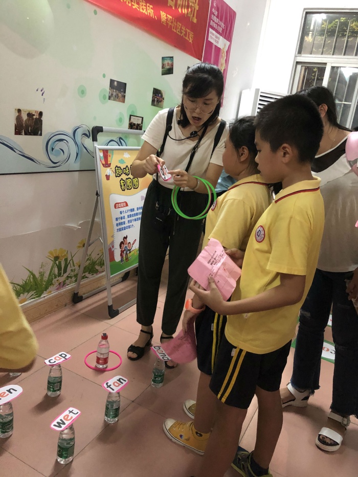 活動(dòng)首先以一首歡快的字母歌熱場,楊賽泳老師簡單介紹了學(xué)校英語科組的特色和亮點(diǎn),胡杜鵑老師和孩子們現(xiàn)場進(jìn)行了拼讀互動(dòng)。接著孩子們就到各個(gè)攤位去玩游戲,拼讀聲、笑聲、喝彩聲此起彼伏。精彩的活動(dòng)結(jié)束后,孩子們還不舍得離去。英語老師們表示,本次活動(dòng)作為西區(qū)昌平小學(xué)英語國家級(jí)課題實(shí)踐系列活動(dòng)之一,隆平社區(qū)是第一站,接下來,每個(gè)月底,課題組成員都會(huì)把這么有趣、生動(dòng)的英語拼讀學(xué)習(xí)分別帶入西區(qū)彩虹社區(qū)、隆昌社區(qū)以及沙朗片區(qū)?;顒?dòng)旨在于以理論指導(dǎo)實(shí)踐,并通過實(shí)踐,提升家長對(duì)網(wǎng)絡(luò)環(huán)境下語音教學(xué)的理解及網(wǎng)絡(luò)平臺(tái)的運(yùn)用,從而創(chuàng)設(shè)更優(yōu)的學(xué)生語音學(xué)習(xí)網(wǎng)絡(luò)環(huán)境,進(jìn)而提升學(xué)生的語音學(xué)習(xí)能力。