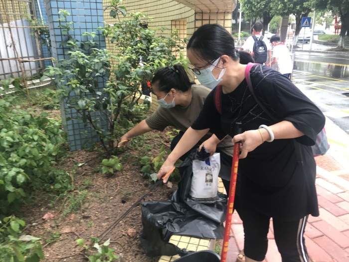 早晨7點30分,志愿者們就帶上掃帚、垃圾鏟、火鉗、手套等清潔工具回到學校,根據(jù)學校創(chuàng)文工作小組的規(guī)劃,分工合作,落實責任。中山一中西區(qū)中學范振海校長等行政帶領(lǐng)志愿者們對每一個區(qū)域進行排查,撿拾垃圾,清理雜物。從辦公室到大操場,從衛(wèi)生間到飲水機,從校外人行道到周圍樓盤,每一個角落,都有志愿者擼起袖子加油干的身影。大家充分發(fā)揚不怕苦、不怕臟、不怕累的精神,仔細地清掃校園內(nèi)外,不放過任何一處,讓衛(wèi)生死角的垃圾、頑固塵埃、污漬無處藏身。