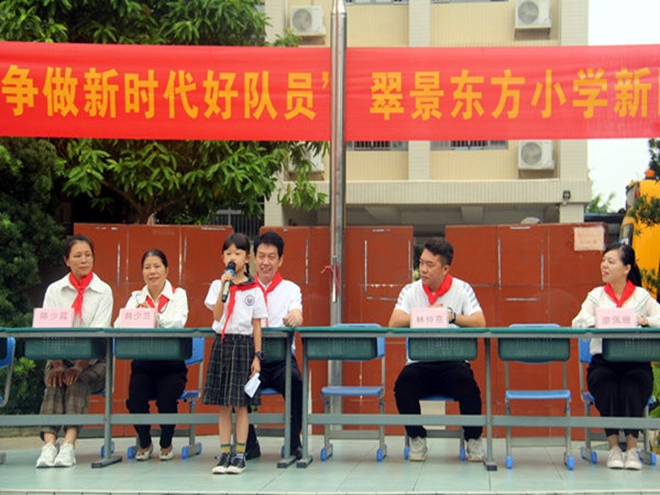 金秋十月,陽(yáng)光溫暖怡人,微風(fēng)和煦輕柔。滿懷著激動(dòng)的心情,翠小隊(duì)員們迎來(lái)了中國(guó)少年先鋒隊(duì)建隊(duì)72周年紀(jì)念日。為了教育學(xué)生繼承和發(fā)揚(yáng)中國(guó)少年先鋒隊(duì)的光榮傳統(tǒng),培養(yǎng)學(xué)生健康向上、積極進(jìn)取的精神,增強(qiáng)學(xué)校少先隊(duì)組織的力量,激發(fā)少先隊(duì)員的光榮感和責(zé)任感。10月15日上午8時(shí)10分,該校大隊(duì)部開(kāi)展了“紅領(lǐng)巾心向黨 爭(zhēng)做新時(shí)代好隊(duì)員”二年級(jí)新隊(duì)員入隊(duì)儀式。