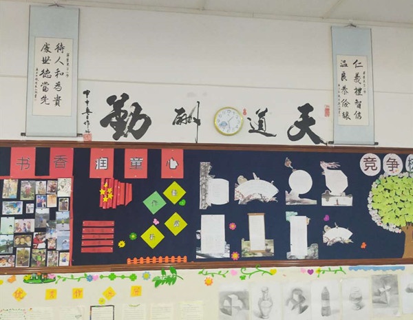 新學(xué)期伊始,該校班主任和全體學(xué)生對(duì)教室班級(jí)文化進(jìn)行精心設(shè)計(jì)與文化布置。該校各班制定了富有特色的班風(fēng)、班訓(xùn)、班主任寄語(yǔ)等,根據(jù)實(shí)際還增設(shè)了一些有特色的欄目。比如,公告欄、時(shí)事欄、誦讀欄、手抄報(bào)等。把“美”的教育滲透在班級(jí)文化的各個(gè)方面:在墻面上還設(shè)置了“小小書(shū)法家”“小小畫(huà)家”、“每周一星”“我真棒”、“學(xué)習(xí)園地”等區(qū)域,做到了讓“每一堵墻”成為“無(wú)聲的導(dǎo)師”。通過(guò)一輪的評(píng)比,每個(gè)年級(jí)都評(píng)出了一個(gè)一等獎(jiǎng)、兩個(gè)二等獎(jiǎng)和若干個(gè)三等獎(jiǎng)。最后把文化凸顯的三個(gè)優(yōu)秀班級(jí)參加區(qū)級(jí)特色班級(jí)評(píng)選候選:分別是六(4)班、六(2)班和二(1)班。