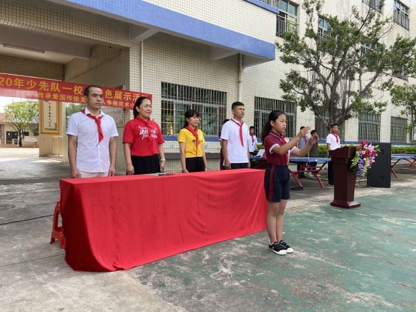 2020年6月29日上午8點(diǎn)15分,聚星學(xué)校大隊(duì)部開展少先隊(duì)“傳承愛(ài)國(guó)傳統(tǒng)文化 人人爭(zhēng)做武術(shù)小健將”一校一特色社團(tuán)展示活動(dòng),聚星學(xué)校黨支部書記兼少工委主任路海云女士、黨支部副書記龍?jiān)娫婆?、小學(xué)教務(wù)處張世鋮主任和聚星學(xué)校少先隊(duì)大隊(duì)輔導(dǎo)員譚治偉老師一同參加了本次活動(dòng)。