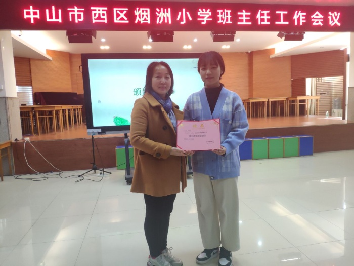 第一環(huán)節(jié),工作室主持人對(duì)名班主任工作室助理劉斯琪老師頒發(fā)聘書,劉老師主要協(xié)助工作室主持人開(kāi)展工作室的一系列活動(dòng)。