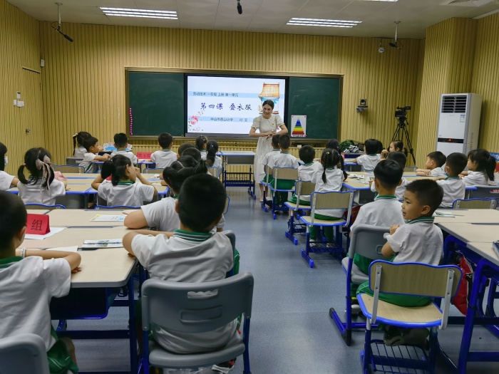 第二節(jié)課例是由香山小學(xué)司雯老師進(jìn)行一年級課例《疊衣服》課堂展示。司老師先是用手指操和猜謎語導(dǎo)入主題,以直觀的圖片對比方式讓學(xué)生感知疊衣服的作用。課堂由易到難,環(huán)環(huán)相扣,先是疊褲子再到疊上衣,把課堂交給學(xué)生,學(xué)生不僅了解褲子和上衣的結(jié)構(gòu)而且了解多種疊法。讓學(xué)生先嘗試再提出問題再嘗試,讓學(xué)生自己動手,開發(fā)學(xué)生的思維力,課堂氣氛十分活躍。最后進(jìn)行小組疊衣服比賽和個人疊衣服比賽。