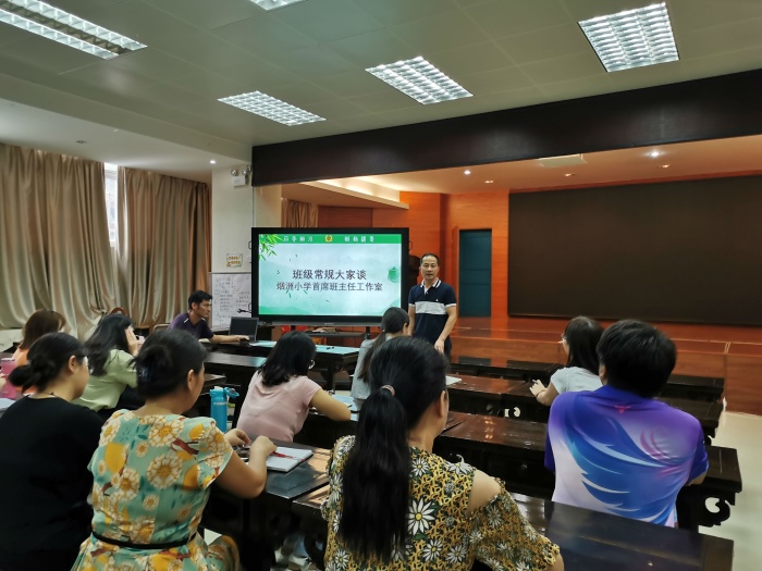 班主任是學(xué)校德育工作的中堅(jiān)力量。新學(xué)期煙洲小學(xué)又迎來了一批充滿活力的新班主任。為促進(jìn)班級管理,提升德育工作實(shí)效性,在學(xué)校德育處的大力支持下,煙洲小學(xué)首席班主任工作室主持人陳儀妹老師的引領(lǐng)下,9月12日下午,在學(xué)校一樓多功能室成功召開了一次班主任工作培訓(xùn)會(huì)議。首席班主任工作室承擔(dān)了本次培訓(xùn)工作。副校長楊志堅(jiān)、主任肖呂純、工作室主持人陳儀妹老師以及班主任工作室成員和全體班主任參加了此次活動(dòng)。
