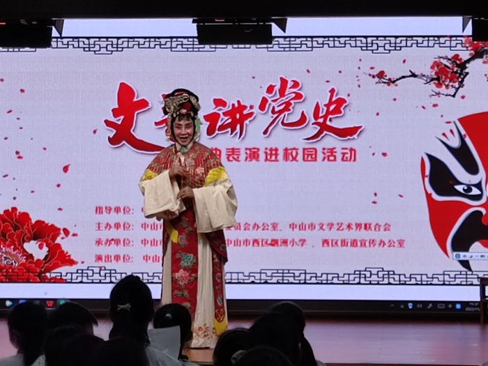 為傳承中華優(yōu)秀傳統(tǒng)文化,普及和推廣京劇藝術(shù),2022年11月1日下午,由中共中山市委宣傳部指導(dǎo),中山市精神文明建設(shè)委員會(huì)辦公室,中山市文學(xué)藝術(shù)界聯(lián)合會(huì)主辦,中山市戲劇家協(xié)會(huì),中山市西區(qū)街道宣傳辦公室,中山市西區(qū)煙洲小學(xué)承辦的,“文藝講黨史”戲曲表演進(jìn)校園活動(dòng),走進(jìn)中山市西區(qū)煙洲小學(xué),帶來了一場(chǎng)精彩的視聽盛宴,讓師生們與京劇親密接觸。