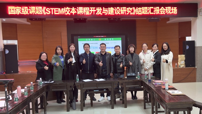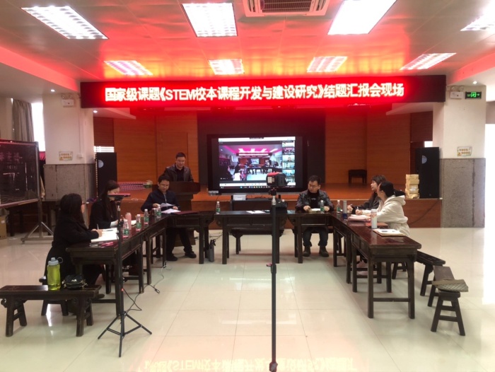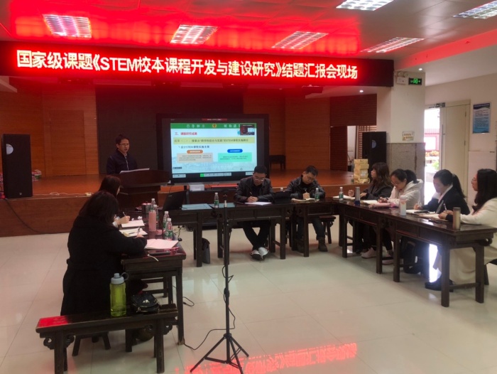 會議伊始,課題組成員黃石生老師作課題研究結(jié)題報告匯報。黃老師分別從研究背景及擬解決問題、研究過程、研究成果、研究效果、創(chuàng)新及進一步思考等五大方面,對課題的研究進行了詳盡的總結(jié)匯報。此次課題研究成果斐然:課題組開發(fā)出了“以學(xué)習(xí)為中心”的STEM校本課程,探索出了“跨學(xué)科綜合與實踐”的STEM課程實施路徑,探索了STEM課程學(xué)習(xí)的評價方式,STEM課程開發(fā)建設(shè)支持平臺建設(shè)實現(xiàn)新突破。課題組還將課程開發(fā)與建設(shè)的經(jīng)驗撰寫成12篇論文,其中有4篇論文公開發(fā)表在教學(xué)權(quán)威雜志上。