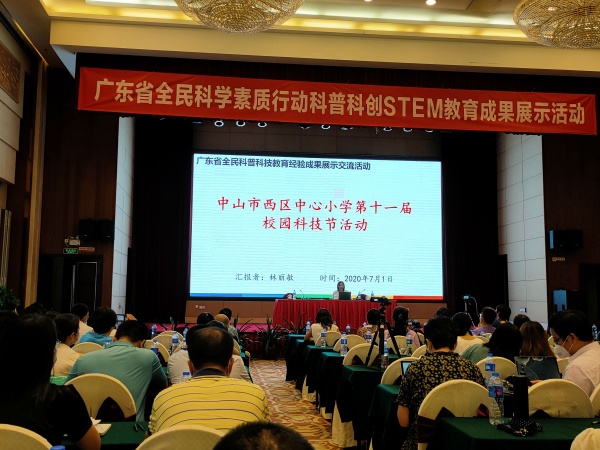 在成果展示環(huán)節(jié)中,中山市西區(qū)中心小學(xué)林麗敏、張森蓮老師的科普成果《中山市西區(qū)中心小學(xué)第十一屆校園科技節(jié)活動》被評為省級“優(yōu)秀科技活動方案”,并推薦在大會上進行成果經(jīng)驗分享。此次匯報,得到了與會老師們的贊賞,并得到王老師的肯定。