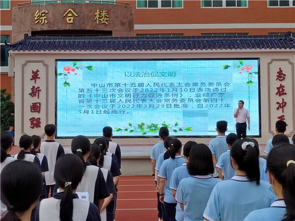 劉莉祥副校長首先對(duì)《中山市文明行為促進(jìn)條例》進(jìn)行了詳細(xì)解讀,并結(jié)合學(xué)校實(shí)際,對(duì)學(xué)生在校文明行為進(jìn)行了表揚(yáng),并圖文并茂的指出存在的不足,號(hào)召仙中學(xué)子以學(xué)習(xí)《條例》為契機(jī),提高文明素養(yǎng),做文明事,講文明話,爭(zhēng)做文明學(xué)子,共創(chuàng)文明校園,永續(xù)文明中山。