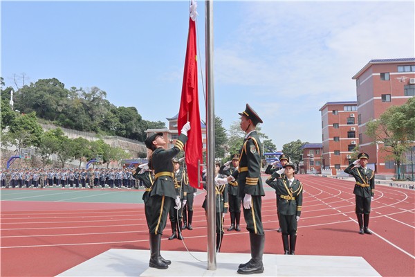 中山軍分區(qū)司令李云濤作講話。胸懷凌云志,青春正出發(fā)。作為時代青年,你們是賡續(xù)民族復興偉業(yè),在“兩個一百年”中承前啟后、開創(chuàng)新偉業(yè)的一代,在此我想對同學們提三點要求:一、勇于青春亮劍,不負韶華。二、勇于肩負使命,砥礪前行。三、勇于直面困難,乘風破浪。國富則軍強,軍強則民安。歷史不容遺忘,強大的國防才是一個民族真正的硬核武實力。和平年代,我們都有屬于自己的“戰(zhàn)場”,只有在各自崗位上全力以赴,認真以待,才能為實現(xiàn)中華民族偉大復興的中國夢凝聚起磅礴的精神力量。,我們期待著你們成才的喜訊,更期待你們成功的榮耀。