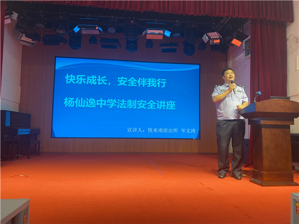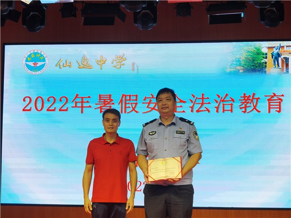 暑假即將來臨,為了提高學(xué)生們的假期法制安全和自我防護(hù)意識,度過一個(gè)平安、健康、快樂的暑假,7月5日下午,我校邀請石岐街道公安分局悅來南派出所民警干部,以現(xiàn)場講座和直播的方式召開全校散學(xué)禮暨暑假安全法制教育,學(xué)校黨總支書記劉朝暉校長和德育處主任張秀芬出席了活動。