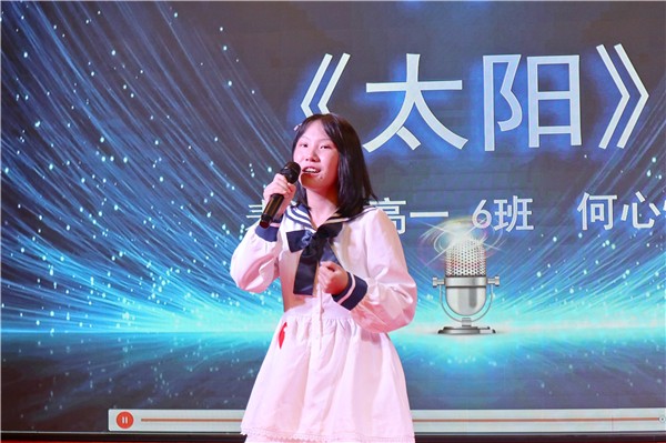 音樂響起,選手輪番上場,深情演唱,表現(xiàn)得從容淡定。曲目類型豐富,風(fēng)格各異,民謠、搖滾、說唱、古風(fēng)樂交替上演。比賽用獨唱、合唱、吉他彈唱多樣式演繹。一首首耳熟能詳?shù)男@歌曲,一陣陣掌聲雷動,一聲聲喝彩助威,表現(xiàn)了仙中學(xué)子積極向上,青春洋溢的姿態(tài)。還有不少頗具臺風(fēng)的選手,熱情地和觀眾進行揮手互動,活躍起現(xiàn)場氣氛。