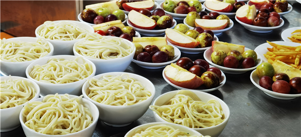 怕孩子營(yíng)養(yǎng)跟不上,家長(zhǎng)送餐奔波幾十公里。為解決家長(zhǎng)的顧慮,讓學(xué)生吃得更營(yíng)養(yǎng)美味,學(xué)校自10月下旬,充分利用教工餐廳空間資源,為學(xué)生推出特色套餐,每天限定150份,涵蓋中、西餐共10個(gè)菜品,每天輪換,物美價(jià)廉,不僅守好學(xué)生的“胃”,更驚艷學(xué)生的“味”。