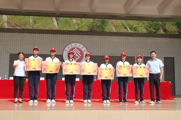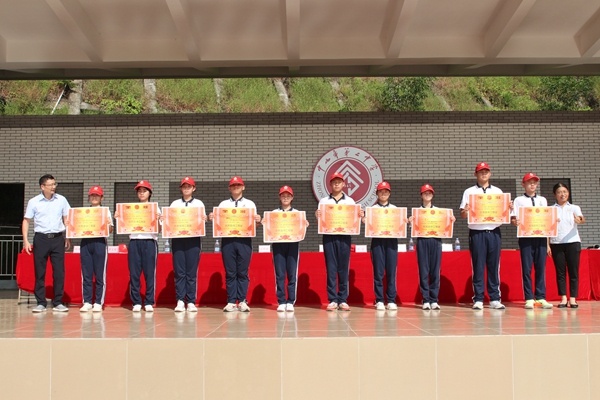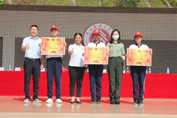 高一5班的學(xué)生代表呂珉熹同學(xué)發(fā)言。從意志品質(zhì)、團隊精神、感恩懷德和使命擔(dān)當(dāng)四個方面講述了軍訓(xùn)的收獲,表達(dá)了自己的態(tài)度與志向。在這短短幾天,二中學(xué)子實現(xiàn)了意志品質(zhì)的跨越與蛻變,涌現(xiàn)出一大批刻苦訓(xùn)練、紀(jì)律嚴(yán)明、內(nèi)務(wù)嚴(yán)整、精神飽滿的先進個人和優(yōu)秀集體。在頒獎儀式上,羅玉瓊副主任宣讀表彰決定,領(lǐng)導(dǎo)嘉賓們?yōu)楂@獎同學(xué)頒獎。