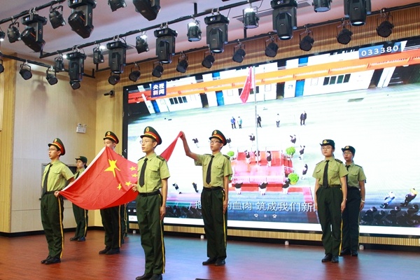 9月19日清晨,中山二中于報(bào)告廳開展本周升旗儀式,第十五屆國旗班同學(xué)手持國旗,列隊(duì)進(jìn)場。鮮紅的國旗,伴隨著雄壯的國歌聲,升旗儀式莊嚴(yán)而神圣。高三3班兩位同學(xué)作《勿忘國恥 復(fù)興中華》的國旗下演講。