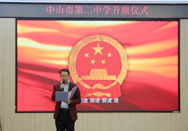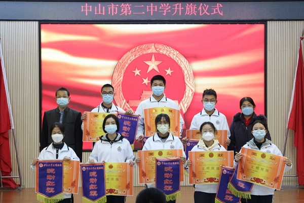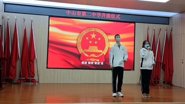 12月12日清晨,中山二中于階梯室開展本周升旗儀式,國旗班同學(xué)手持國旗,列隊進(jìn)場。鮮紅的國旗,伴隨著雄壯的國歌聲,升旗儀式莊嚴(yán)而神圣。高三12班兩位同學(xué)作《學(xué)習(xí)憲法,做守法公民》的國旗下演講。