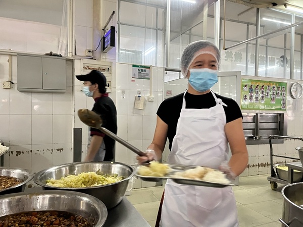 每天清晨三點,天尚未亮,學校食堂的廚師和阿姨們穿上工作服、戴上帽子口罩,完成洗手、消毒、帶手套等程序后,飯?zhí)玫牡谝豢|炊煙在中山二中的天空裊裊升起。為了確保讓全校師生吃上熱乎新鮮的飯菜,校園封閉管理期間,廚師阿姨都齊齊出動,由于部分飯?zhí)苗婞c工員工不能進校,人手更少,員工們卻比以往起得更早,快速投入到工作中。他們毫無怨言,站累了歇一會繼續(xù)上崗,在這特殊期間,每個人都肩負起自己的責任,共同維護二中食堂后勤工作的正常運轉。