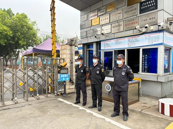 校園封閉指令發(fā)出后,總務(wù)處組織封閉學(xué)校,大門處圍起柵欄,安保人員執(zhí)勤, 筑牢抗擊疫情防線。