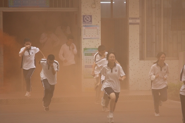濃煙四起,警報拉響??焖俪鰮簦o急疏散,今天,一場生命與時間的競賽,在中山市第二中學(xué)校園緊張展開。