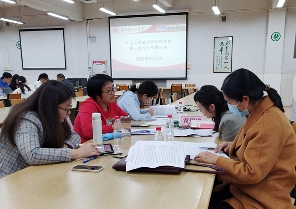 2023年3月13日晚,中山市第二中學(xué)報告廳內(nèi)燈光明亮,教研氛圍濃厚。在學(xué)校領(lǐng)導(dǎo)的大力支持下,中山市第二中學(xué)寫作組開展了第六次教學(xué)論文研磨活動。本次活動由學(xué)校教科室歐陽珊副主任主持,中山市青年教師領(lǐng)軍人才中山市第二中學(xué)陳姍姍老師進行專題講座,中山市寫作組專家老師對論文進行點評和指導(dǎo)。學(xué)校寫作組成員、青年教師們滿懷學(xué)習(xí)熱情,積極參加了本次學(xué)習(xí)活動,感到收獲滿滿。