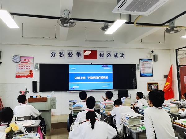 為加強(qiáng)對學(xué)生網(wǎng)絡(luò)信息意識和行為的培養(yǎng),廣泛宣傳國家互聯(lián)網(wǎng)管理、使用及網(wǎng)絡(luò)安全等法律法規(guī),倡導(dǎo)文明上網(wǎng)、健康上網(wǎng),自覺抵制網(wǎng)絡(luò)不良信息,營造良好的網(wǎng)絡(luò)環(huán)境,促進(jìn)青少年學(xué)生健康成長,2023年3月13日,中山市第二中學(xué)以班級為單位,開展學(xué)習(xí)《預(yù)防中學(xué)生沉迷網(wǎng)絡(luò)安全教育》主題班會。