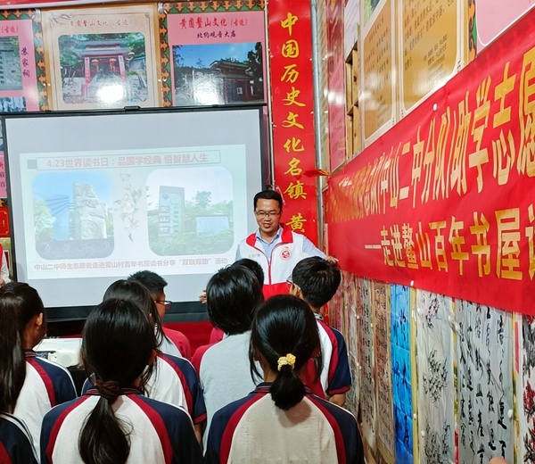 讀書之樂樂何如?綠滿窗前草不除。為深入推進全民閱讀,營造全市書香氛圍,響應(yīng)中山市“創(chuàng)建文明城市”號召,以文化賦能鄉(xiāng)村振興,中山市第二中學(xué)大力推進與鰲山村“雙聯(lián)雙助”行動。4月23日,二中師生志愿者走進鰲山村百年書屋開展“品國學(xué)經(jīng)典,悟智慧人生”讀書分享助學(xué)活動。