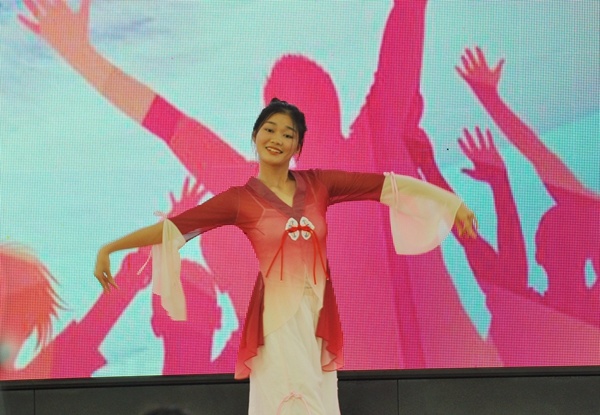 古典舞《山鬼》舞姿優(yōu)美,連翻后空翻及空中大跳讓觀眾拍手叫好。旗袍舞蹈《相思怨》,優(yōu)美的舞姿里上演出上海旗袍之都的韻味。獨(dú)唱《我的歌聲里》節(jié)目,動(dòng)聽的歌聲,收獲大家的掌聲與歡呼聲。三人合唱《重返十七歲》讓大家感受到了青春的可貴。五位女生帶來舞蹈《SNEAKERS》,洋溢著青春的活力。芭蕾舞蹈《藍(lán)鳥》,輕盈靈動(dòng)。獨(dú)唱《打開》,歌者實(shí)力唱功讓同學(xué)們驚嘆。