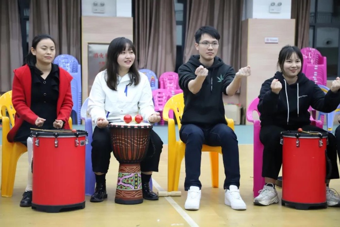 活動(dòng)開始,李醫(yī)生讓全體教師圍成一個(gè)圓圈,分小組進(jìn)行活動(dòng)。接著,通過(guò)音樂(lè)治療的方式引導(dǎo)大家緩解當(dāng)天的工作壓力,鼓勵(lì)大家通過(guò)音樂(lè)去表達(dá)自己的情緒,按照自己的理解去彈奏樂(lè)器,通過(guò)音樂(lè)去相互交流,表達(dá)自己的好感或化解矛盾。