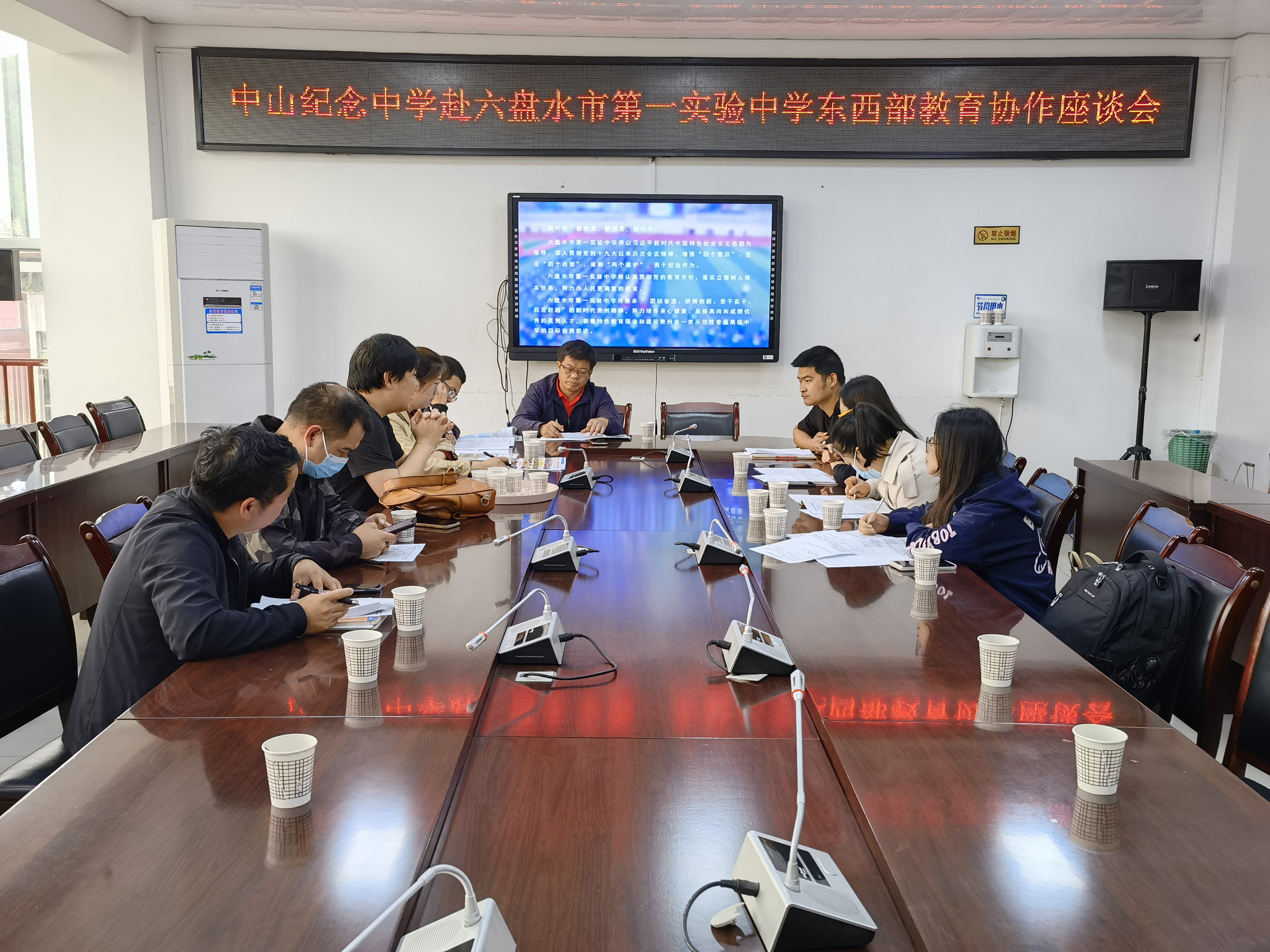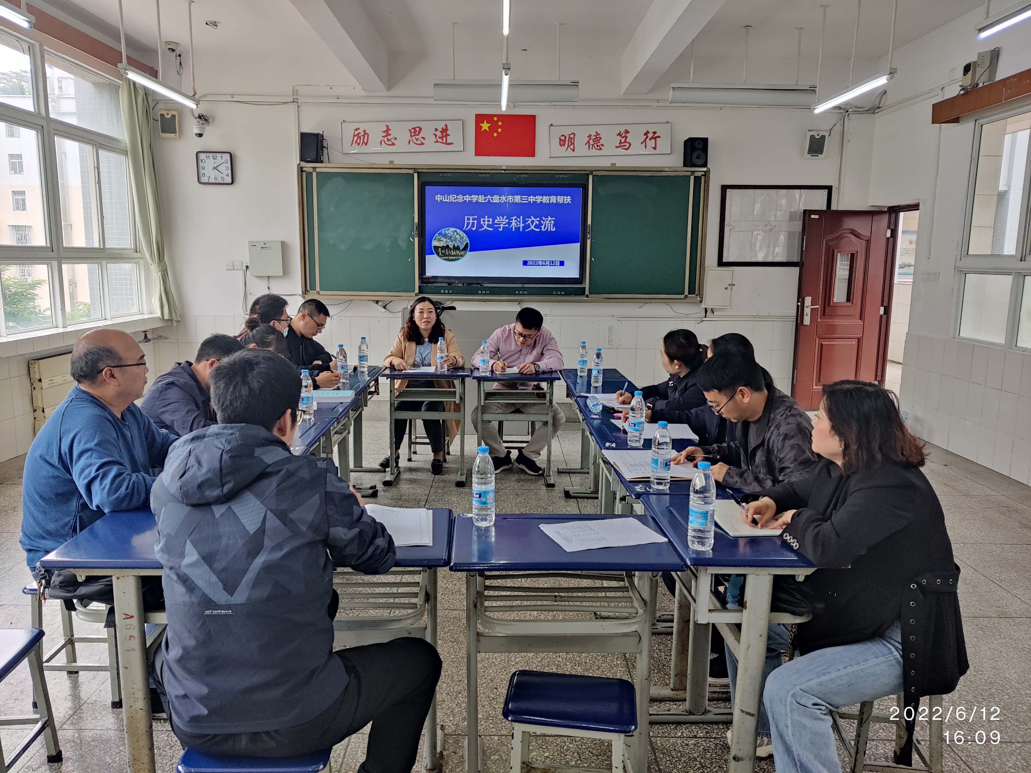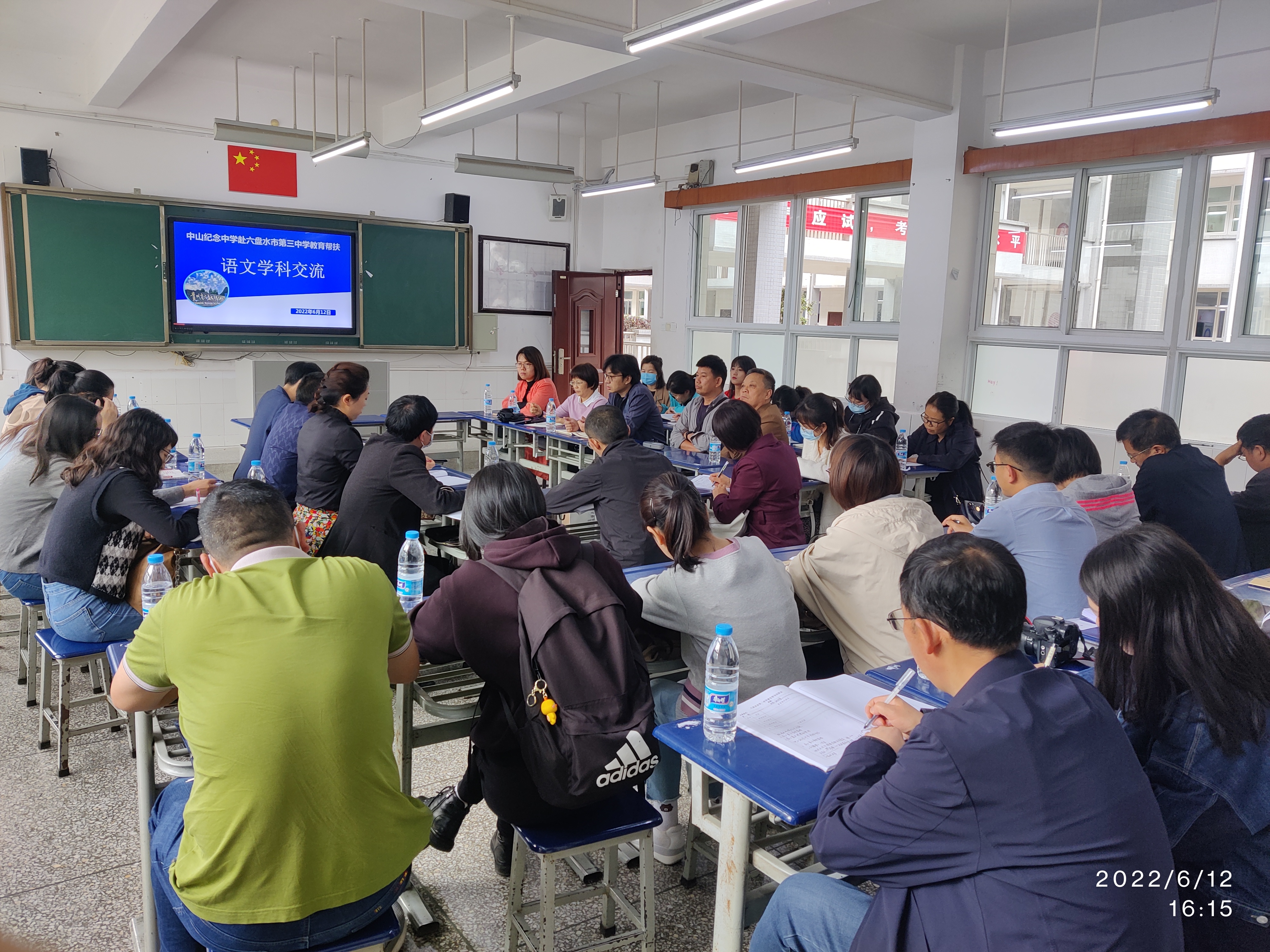 為貫徹《廣東省中山市 貴州省六盤水市對口幫扶教育協(xié)作協(xié)議》文件精神,落實中山紀念中學對六盤水市第三中學、六盤水市第一實驗中學以及六盤水市第二中學的幫扶工作,6月11日至14日,在校黨委委員、副校長梁世鋒的帶領下,教務處副主任兼高三年級主任龔謹、科組長、班主任和骨干教師一行共24人到六盤水市開展教育幫扶活動。在此期間,六盤水市政府黨組成員、副秘書長,廣東省粵黔工作隊六盤水工作組組長曾慶文率六盤水工作組一行專程看望慰問了紀中教育幫扶一行。