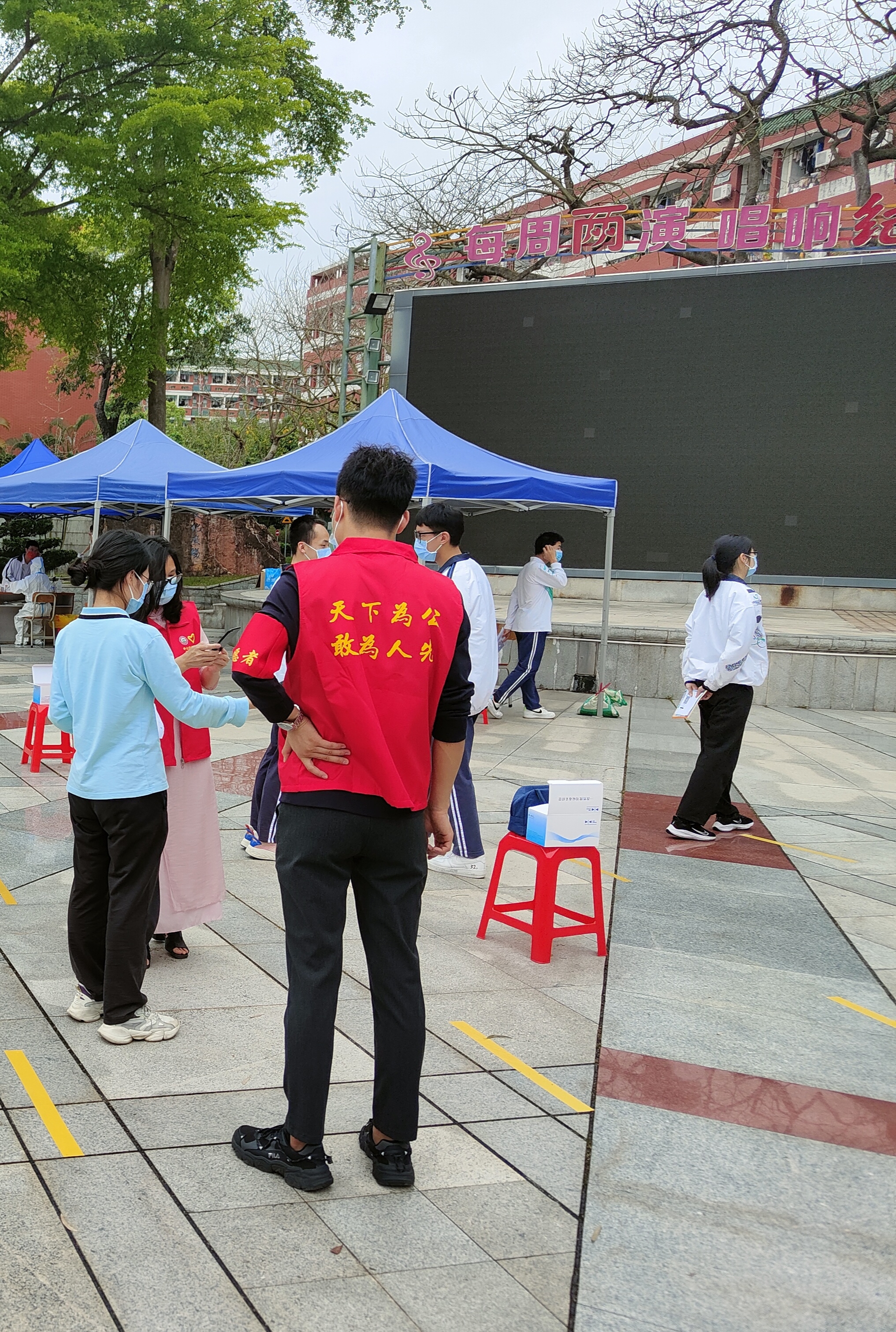 3月26日下午,中山紀念中學收到南朗街道(翠亨新區(qū))疫情防控指揮部下發(fā)的關于開展區(qū)域全員核酸檢測的重要任務。對此,校黨委迅速行動,嚴密部署,快速設置4個核酸采樣點、24個采樣單元,當天晚上組建教師志愿服務隊6隊共60人,科學制定分區(qū)分批檢測計劃并及時向全校師生發(fā)出27日開展全校核酸檢測的預通知。