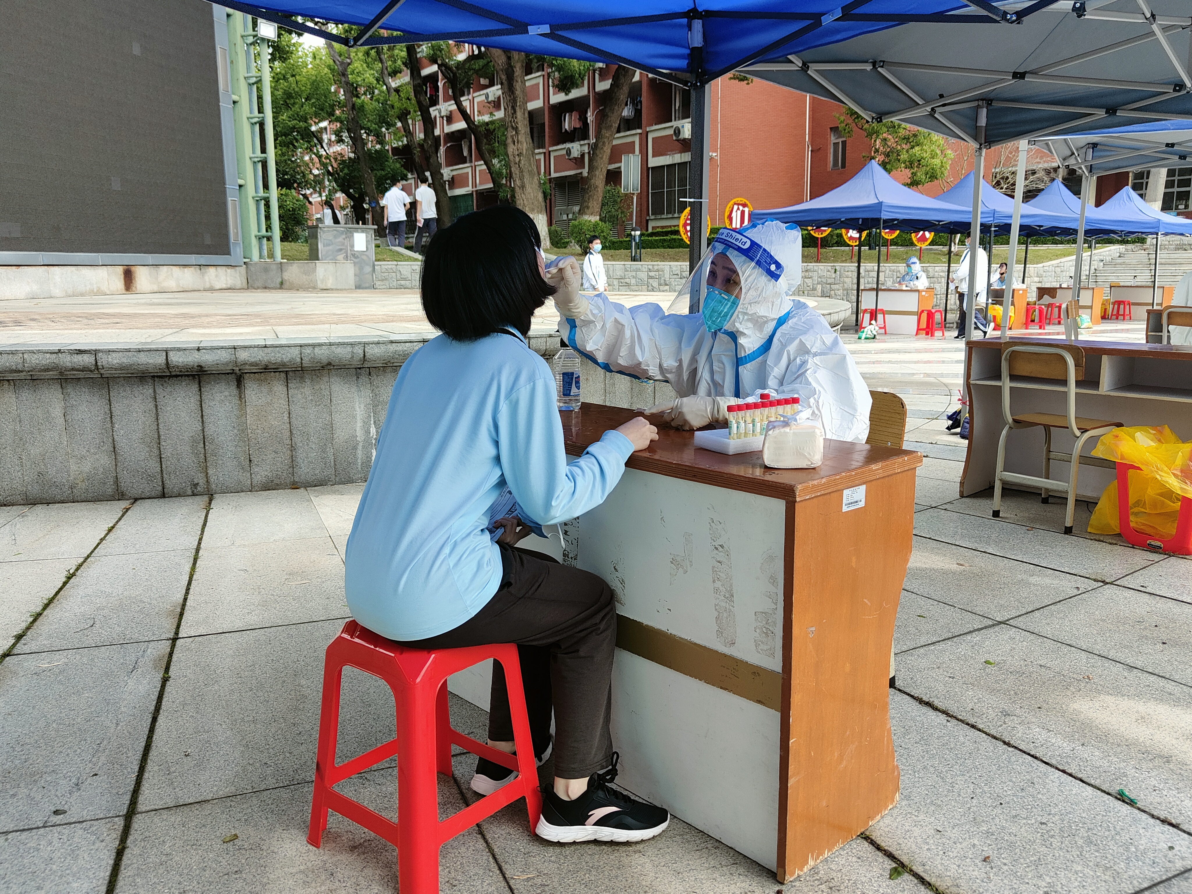 3月27日上午9時30分,隨著哲生文化廣場(高三年級師生采樣點)啟動,全校核酸檢測工作正式開始。離高考還有71天,為確保核酸檢測工作平穩(wěn)有序地進行,同時最大限度確保高三同學的復習時間,高三年級提前了進行科學的部署,以班級為單位進行了細致的摸排,各班班主任為學生提前備好核酸檢測葵花碼。檢測開始后,大家全力配合,有序檢測,遵守秩序,保持距離,在核實個人信息后依次開展核酸采樣工作。醫(yī)護人員身穿防護服、頭戴護目鏡快速精準的為師生進行檢測,不到兩個小時,高三年級全員核酸檢測工作順利完成。