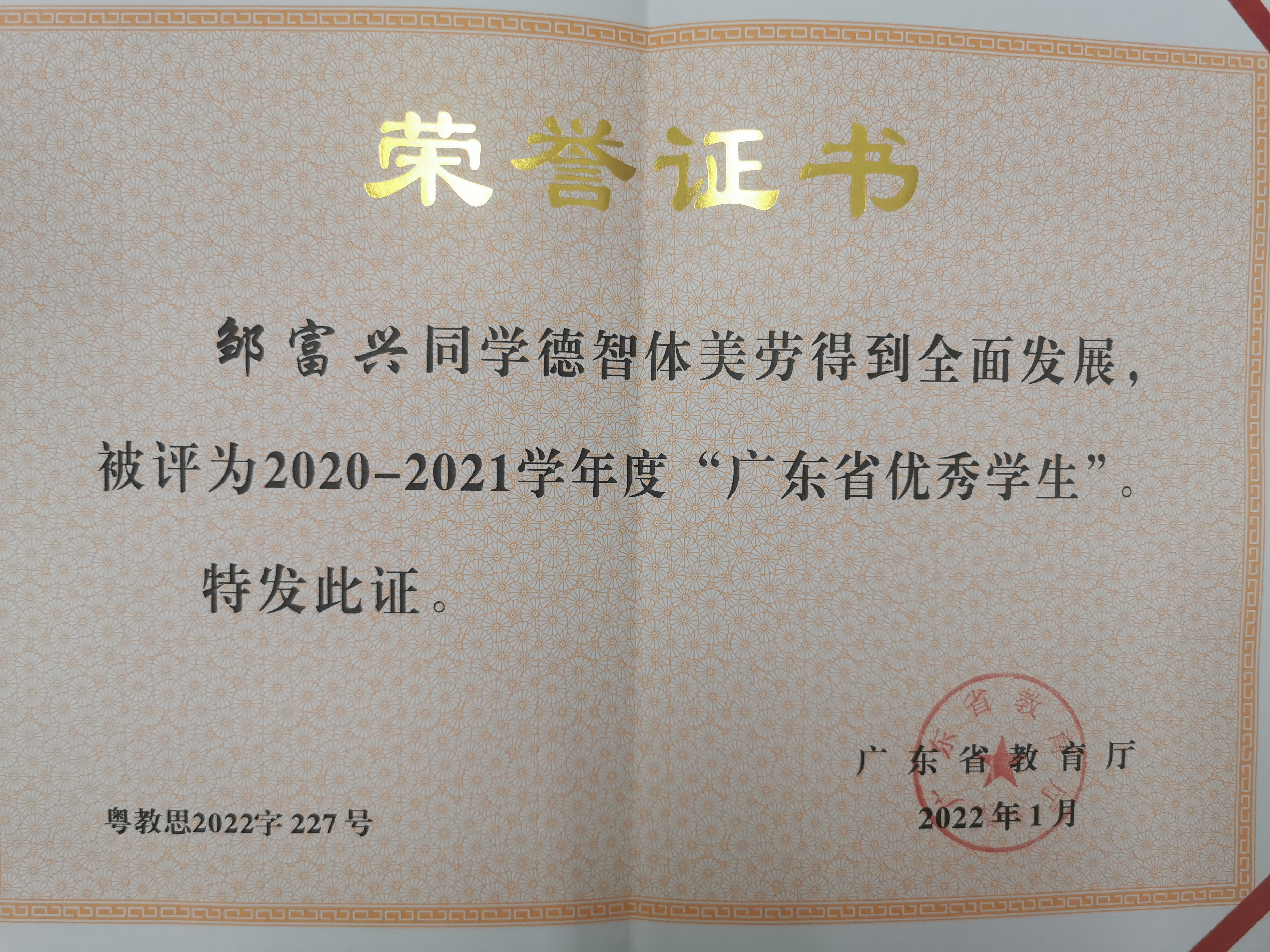 立德樹(shù)人,五育并舉,彰顯榜樣力量!日前,在廣東省教育廳組織的評(píng)選表彰中,我校高三(1)班鄒富興同學(xué)德智體美勞全面發(fā)展,榮獲2020-2021學(xué)年度“廣東省優(yōu)秀學(xué)生”稱(chēng)號(hào),全省共432名學(xué)生入選。