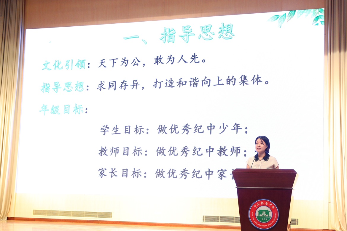 初一黃紅主任述職中指出,初一年級(jí)在紀(jì)中文化的引領(lǐng)下確定了年級(jí)的指導(dǎo)思想——求同存異,打造和諧向上的集體;年級(jí)目標(biāo)——學(xué)生目標(biāo):做優(yōu)秀紀(jì)中少年;教師目標(biāo):做優(yōu)秀紀(jì)中教師;家長(zhǎng)目標(biāo):做優(yōu)秀紀(jì)中家長(zhǎng)。以“適應(yīng)”和“自律”作為實(shí)現(xiàn)目標(biāo)的階梯式德育工作關(guān)鍵詞。初一年級(jí)德育團(tuán)隊(duì)已從青澀走向成熟,并呈現(xiàn)出“和而不同、全員育人、自主創(chuàng)新、深耕細(xì)作”的特點(diǎn)。