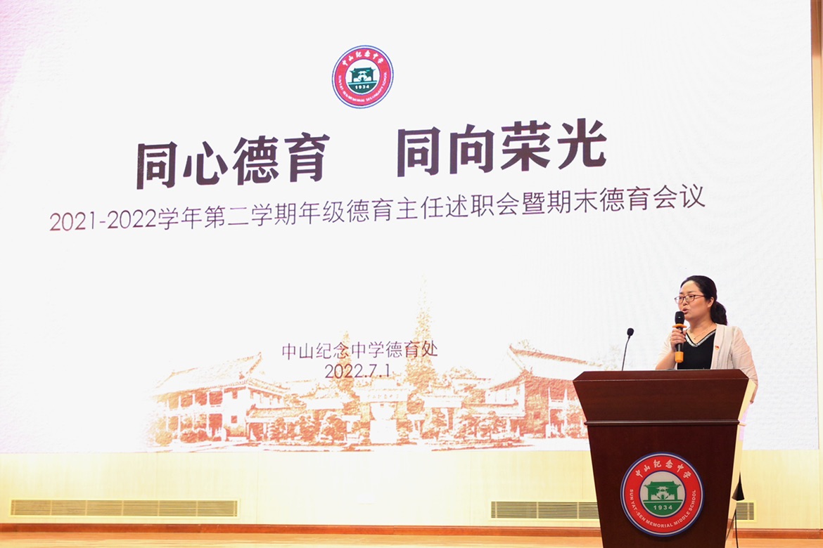 隨后的期末德育總結(jié)中,賈金珠主任從班主任隊(duì)伍專業(yè)建設(shè)、心理健康教育、校本德育課程建設(shè)、宿舍文化建設(shè)以及勞動(dòng)、普法、研學(xué)、安全、家校、科研等方面進(jìn)行了主要成績(jī)的總結(jié),也提出“反思六要”,每個(gè)德育人必須強(qiáng)化政治要求,有鮮明的德育工作定調(diào)。即進(jìn)一步提升思想認(rèn)識(shí)和政治站位,始終明確學(xué)校德育工作的根本目標(biāo)是培養(yǎng)擁護(hù)黨的領(lǐng)導(dǎo)和中國(guó)特色社會(huì)主義制度的時(shí)代新人。所以,要升華愛國(guó)主義教育到價(jià)值判斷層面;要培養(yǎng)德育人自身思政素養(yǎng);要守牢意識(shí)形態(tài)安全底線,心理健康安全底線,校園安全底線;要肩負(fù)起提高家長(zhǎng)的家庭教育水平的使命;要充分、深刻理解紀(jì)中校園文化建設(shè);要講德育溫度和效度,用真善美的方式引領(lǐng)真善美的思想。
