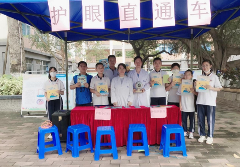 護眼直通車是由我校德育處牽頭,以由校醫(yī)和各班視力保健員組建的光明使者小分隊為宣傳主力的校園流動護眼宣傳陣地,不定時在學(xué)校教學(xué)區(qū)、運動區(qū)和生活區(qū)開展科普宣傳活動,用音樂、拼圖、有獎問答等學(xué)生喜聞樂見的形式,科普眼球結(jié)構(gòu)、近視成因和預(yù)防近視的方法,把大家從室內(nèi)吸引至綠樹成蔭的戶外,讓疲勞的雙眼得以休息,讓久坐的身軀得以放松,讓愛眼防近的知識得以廣泛傳播。