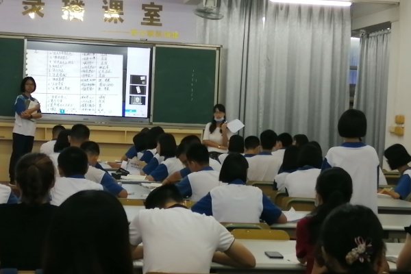 本次教研活動的第一個流程是觀摩由曹步中學(xué)郭玉婷老師執(zhí)教的中考備考課《未知與已知——初中實詞一次多義》。郭玉婷老師的課有真題回顧、題型歸納、方法總結(jié)、積累展示、中考演練、作業(yè)布置六個部分,每個環(huán)節(jié)內(nèi)容層層遞進(jìn)、環(huán)環(huán)相扣,讓學(xué)生深入了解中考實詞的考察方法并能靈活運用。