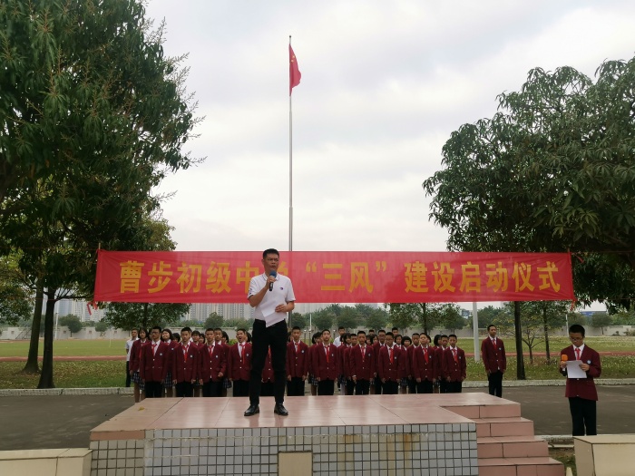 為了讓全體師生更加明確曹步中學(xué)新學(xué)期的工作重心,2023年2月13日上午利用升旗儀式時(shí)間曹步中學(xué)舉行“三風(fēng)”(校風(fēng)、班風(fēng)、學(xué)風(fēng))建設(shè)啟動(dòng)儀式,全體師生在籃球場(chǎng)參加了本次活動(dòng)。