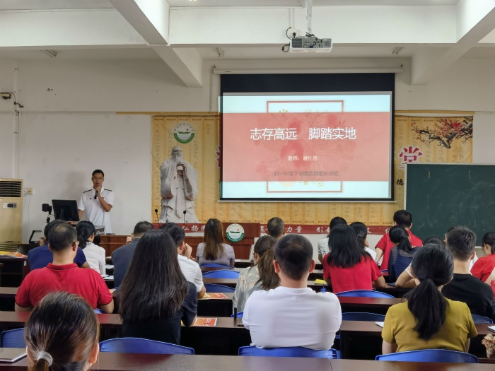 首先是三個年級的總結。初三年級德育級長姚曉梅代表初三總結發(fā)言。本學期初三德育工作從指導思想、質量求生存到創(chuàng)新求發(fā)展的目標出發(fā),齊攜手、抓落實開展得扎實有效,向中考二等獎的目標共同努力。初二年級德育級長陳榮欣作主題為“團結、細致、穩(wěn)進”總結匯報,初二級學生正處于青春叛逆期,針對這一階段的學生,學校要幫助學生明確正道、守住根基。因此,初二年級本學期講安全保平安,抓常規(guī)促教育,塑隊伍共成長三個重點工作貫穿整個學期,為學生平穩(wěn)度過初二保駕護航。初一年級德育級長謝仕浩代表初一總結匯報。初一團隊團結一致,在初一新教師比較多的情況下,通過優(yōu)化合作、充分考慮新生特點的基礎上,確定初一培養(yǎng)目標:塑造富有特色的向美學子。包括品德之美、習慣之美、生活之美、學習之美、文化之美、運動之美等。力求文明其精神,野蠻其體魄,初一級管理工作開展得井然有序,富有成效。