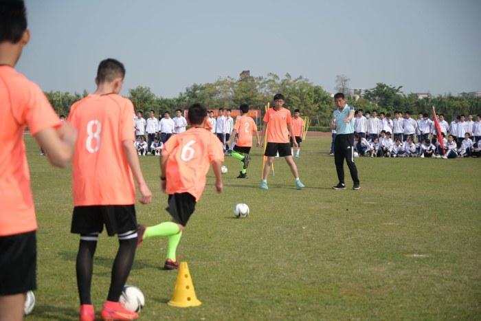 為貫徹落實(shí)“雙減”政策,2022年3月2日,民進(jìn)中山市委會(huì)教研室支部與服務(wù)工委邀請(qǐng)市足球協(xié)會(huì)知名教練員李遠(yuǎn)雄、馬慶到港口中學(xué)指導(dǎo)初中學(xué)生足球技能訓(xùn)練,開展“教育智助匯港口”足球技能進(jìn)校園活動(dòng),近700名港中學(xué)子參與了此項(xiàng)活動(dòng)。