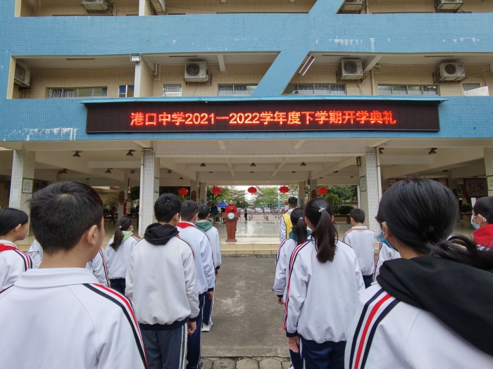 2022年2月14日早上,港口中學(xué)全體師生迎著清新的春風(fēng)齊聚學(xué)校中心廣場,舉行2022年春季開學(xué)典禮,共享歡樂時光。