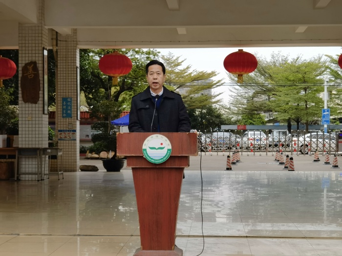 第一項,港口中學(xué)黨支部書記、校長廖志堅給全體同學(xué)上思政第一課,他給予全體師生新學(xué)期的誠摯問候,對全體同學(xué)提三點希望:一是目標決定結(jié)果,希望同學(xué)們樹立遠大的理想目標并為之不懈地努力;二是態(tài)度決定結(jié)果,希望同學(xué)們帶有使命感去學(xué)習(xí),要有勤奮的態(tài)度、刻苦的態(tài)度、進取的態(tài)度、務(wù)實的態(tài)度;三是方法決定結(jié)果,希望同學(xué)們掌握科學(xué)、高效的學(xué)習(xí)方法,用努力和追求、用成功和輝煌去感動所有關(guān)心我們的人。