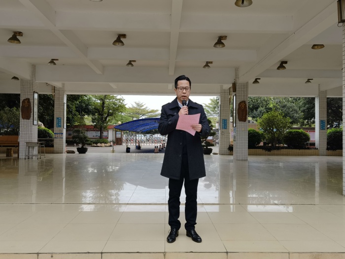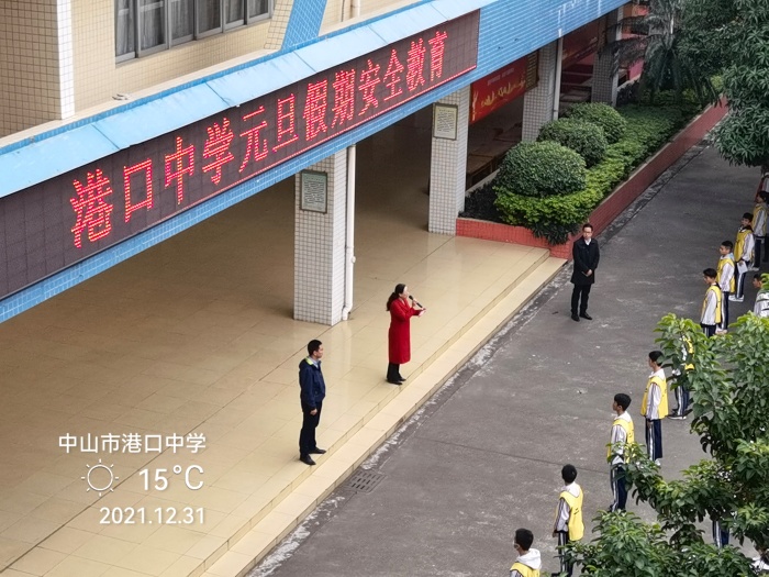 2022年元旦假期將至,為了讓全校師生度過一個平安、快樂的假期,2021年12月31日上午,中山市港口中學召集全體師生在學校中心廣場開展2022年元旦慶祝暨節(jié)前安全教育活動?;顒佑傻掠幐敝魅螐埥s主持。