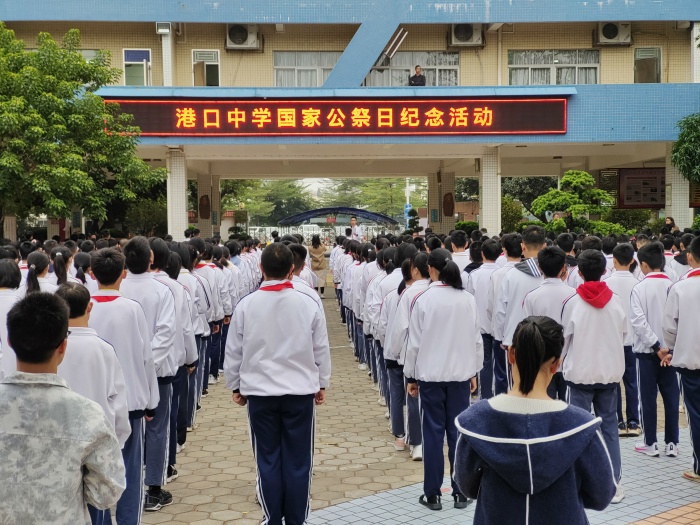 “五洲同懷民族情,四海共祭家國魂”,2021年12月13日是南京大屠殺第84周年紀(jì)念日,第8個(gè)國家公祭日,是國家和民族永恒的國殤,更是每一個(gè)中國人都應(yīng)該銘記的一天。硝煙雖已遠(yuǎn)去,國恥民殤不應(yīng)忘記!2021年12月13日上午,港口中學(xué)全體師生在升旗儀式上舉行國家公祭日紀(jì)念活動。
