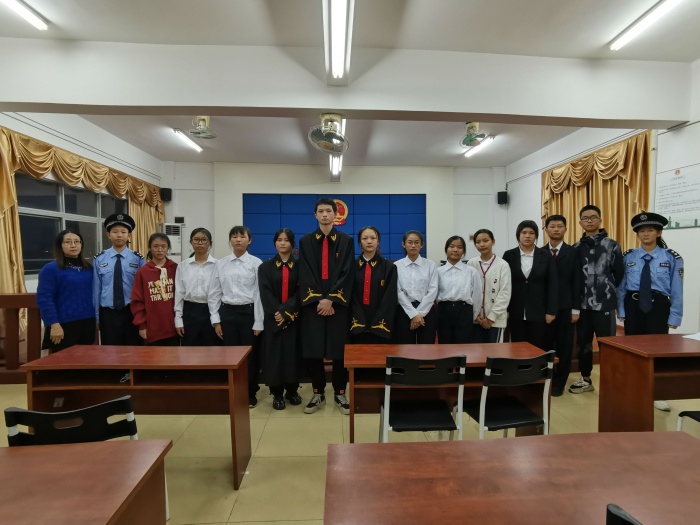 為進(jìn)一步建設(shè)平安校園,努力營(yíng)造學(xué)生學(xué)法、知法、守法的法治氛圍,增強(qiáng)學(xué)生的法治觀念。2021年12月9日,由葉綺敏老師輔導(dǎo)的一場(chǎng)別開生面的模擬庭審活動(dòng)在港口中學(xué)五樓模擬法庭室上演。學(xué)生們擔(dān)任審判長(zhǎng)、陪審員、公訴人、辯護(hù)人、被告人、證人、法定代理人和法警等角色,通過真實(shí)再現(xiàn),模擬審判了一起由早戀行為引起的校園欺凌及校園傷害案件。給師生們上了一堂鮮活的法治教育課。