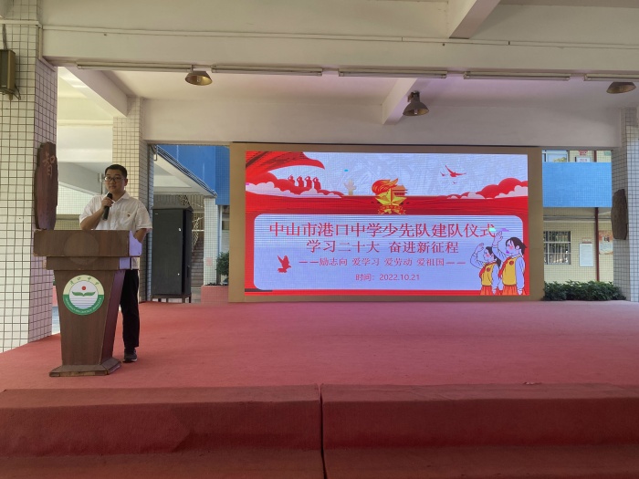 親愛的隊員們,港口中學是你們展現(xiàn)青春才華的大舞臺,祝愿少先隊員們在港中這個大家庭里,好好學習,鍛煉成才,為自己初中生活寫下靚麗的一頁。奮斗吧!少先隊員們!