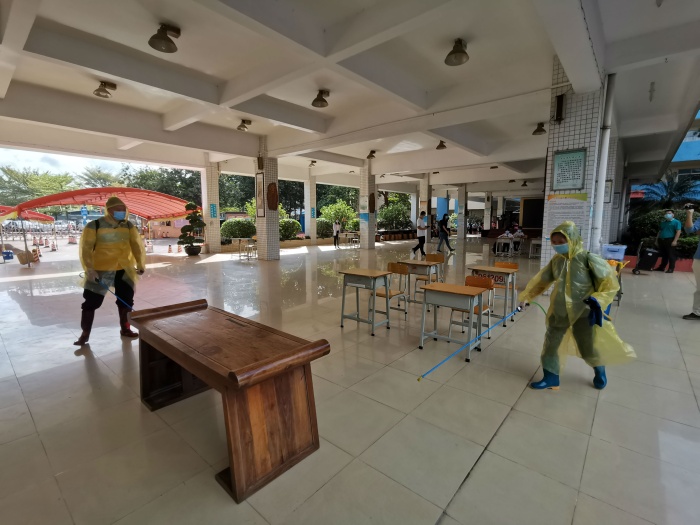演練后,德育處副主任張建榮對全校師生進(jìn)行疫情防控指導(dǎo)培訓(xùn),特別強(qiáng)調(diào)做好校門入口關(guān),宿舍把控關(guān),嚴(yán)防感染性疾病進(jìn)學(xué)校進(jìn)班級,做好衛(wèi)生清潔保潔與日常消毒,特別是勤洗手。注意課室打開門窗,時(shí)刻保持空氣新鮮流通,及時(shí)傾倒課室垃圾,認(rèn)真做好早、中、晚三次體溫檢測和登記,如有異常,立即向校醫(yī)室報(bào)告。