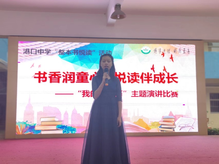 書籍滲透人心,伴隨血液循環(huán),港口中學(xué)師生一起沉浸在濃濃的翰墨書香中,不斷學(xué)習(xí),不斷成長。本次“書香潤童心,悅讀伴成長”——“我的閱讀歷”主題演講比賽活動(dòng)立足于學(xué)生的整本書悅讀實(shí)踐,是學(xué)生閱讀經(jīng)歷,閱讀體驗(yàn),閱讀能力的提升過程,有利于營造良好的書香校園氛圍,不斷提高學(xué)生整本書閱讀能力,在“悅讀”中成長。