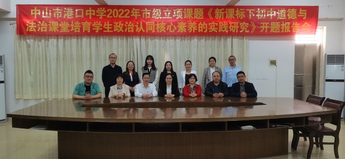 3月16日下午,中山市港口中學(xué)市級(jí)道德與法治課題《新課標(biāo)下初中道德與法治課堂培育學(xué)生政治認(rèn)同核心素養(yǎng)的實(shí)踐研究》在學(xué)校榮譽(yù)室舉行開(kāi)題報(bào)告會(huì)。此次會(huì)議邀請(qǐng)了中山市第一中學(xué)道德與法治高級(jí)教師謝曉春老師、中山市牛角初級(jí)中學(xué)道德與法治高級(jí)教師朱愿珍老師、中山市港口中學(xué)道德與法治高級(jí)教師周智勇老師、市督學(xué)及港口鎮(zhèn)教育與體育事務(wù)中心教研專(zhuān)干蘇少偉、課題過(guò)程管理員陳輝老師等專(zhuān)家到校做指導(dǎo)。